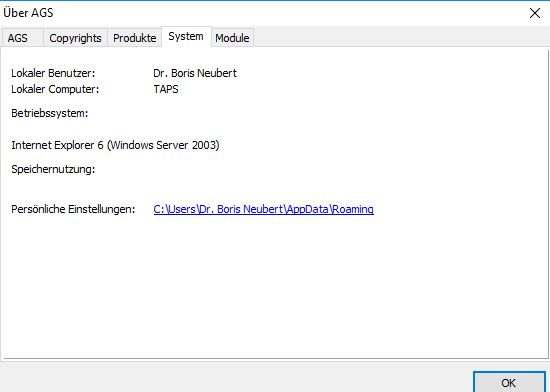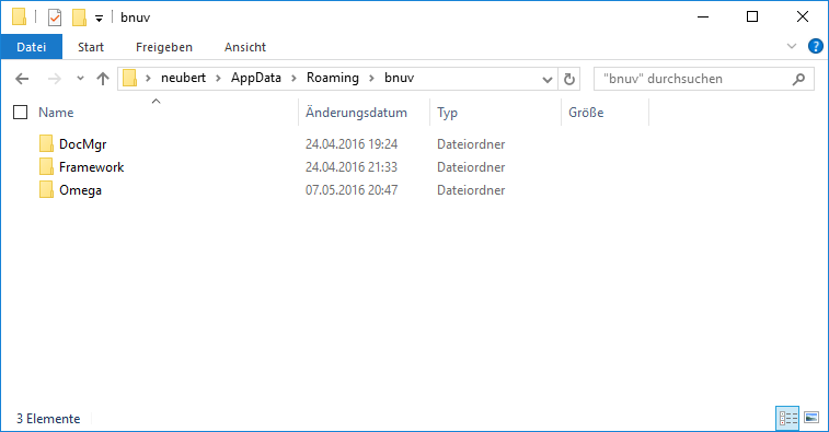 The configuration settings are stored in the bnuv subfolder of the standard Windows application data directory. Windows has a directory for application data specific to the currently logged-in user. This directory is displayed in the System tab under Personal Settings in the program's information window, which you can access via the menu item Help | About....