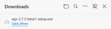 Please run the downloaded installer ags-2.xy-setup.exe to install AGS.