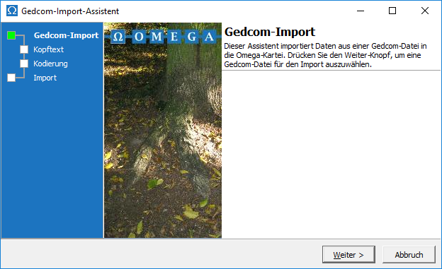 Gedcom import is currently available in Omega's classic user interface . The Gedcom settings come into play during Gedcom import.