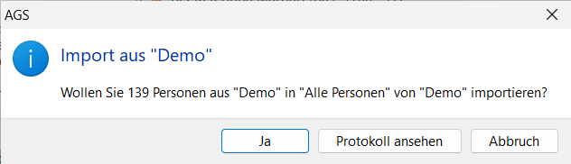 To copy all persons in a person directory to another file, click the person directory in the source file with the left mouse button in the tree view of the AGS Navigator and drag the person directory, while still holding down the mouse button, to a person directory in the target file. To copy one or more individual people, first select these people in the details view of the person directory :