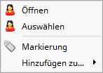 The context menu for a person in the detail view of a person selector contains the following entries: