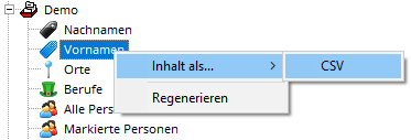 - Select "Content as... | CSV" from the context menu . For directories of people, select "Export | CSV | People" instead.