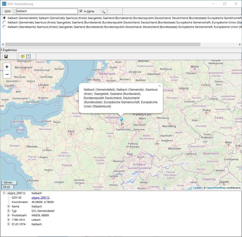 GOV geocoding can be used in the map viewer to assign a GOV ID (identifier of a location in GOV) and in the main menu under Extras | GOV geocoding for searching in GOV.