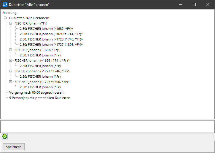 In addition, a list of persons called duplicates "..." is created, which records all persons for whom at least one sufficiently similar other person exists in the file.